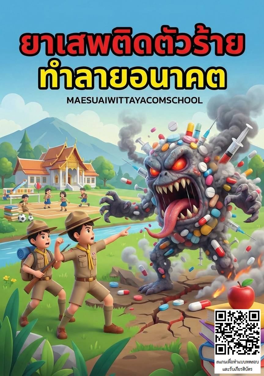 โรงเรียนแม่สรวยวิทยาคม ขอเชิญชวนคณะครู นักเรียน ผู้ปกครอง และผู้สนใจทุกท่าน ร่วมทำแบบทดสอบความรู้ในโครงการ “ลูกเสือต้านภัยยาเสพติด” เพื่อส่งเสริมความรู้ ความเข้าใจ และสร้างภูมิคุ้มกันในการป้องกันและตระหนักถึงพิษภัยของยาเสพติด ซึ่งเป็นปัญหาสำคัญที่ส่งผลกระทบต่อเยาวชนและสังคมโดยรวม