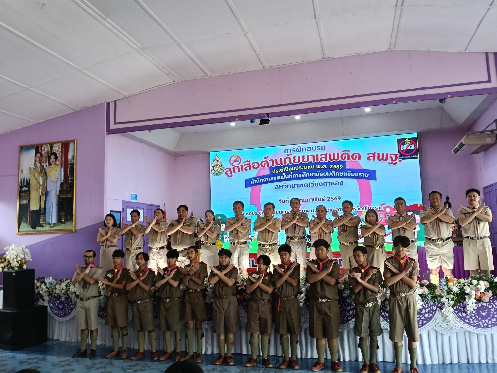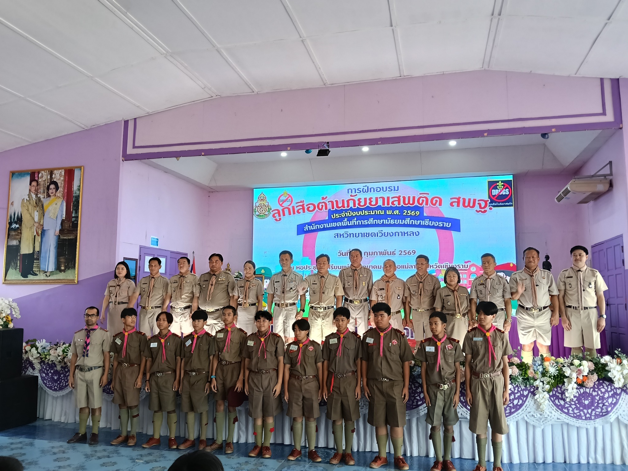 วันที่ 19 กุมภาพันธ์ 2569 โรงเรียนแม่สรวยวิทยาคม นำลูกเสือ จำนวน 10 นาย เข้าร่วมโครงการลูกเสือต้านภัยยาเสพติด สพฐ. ประจำปีงบประมาณ 2569 ซึ่งจัดโดยสำนักงานเขตพื้นที่การศึกษามัธยมศึกษาเชียงราย